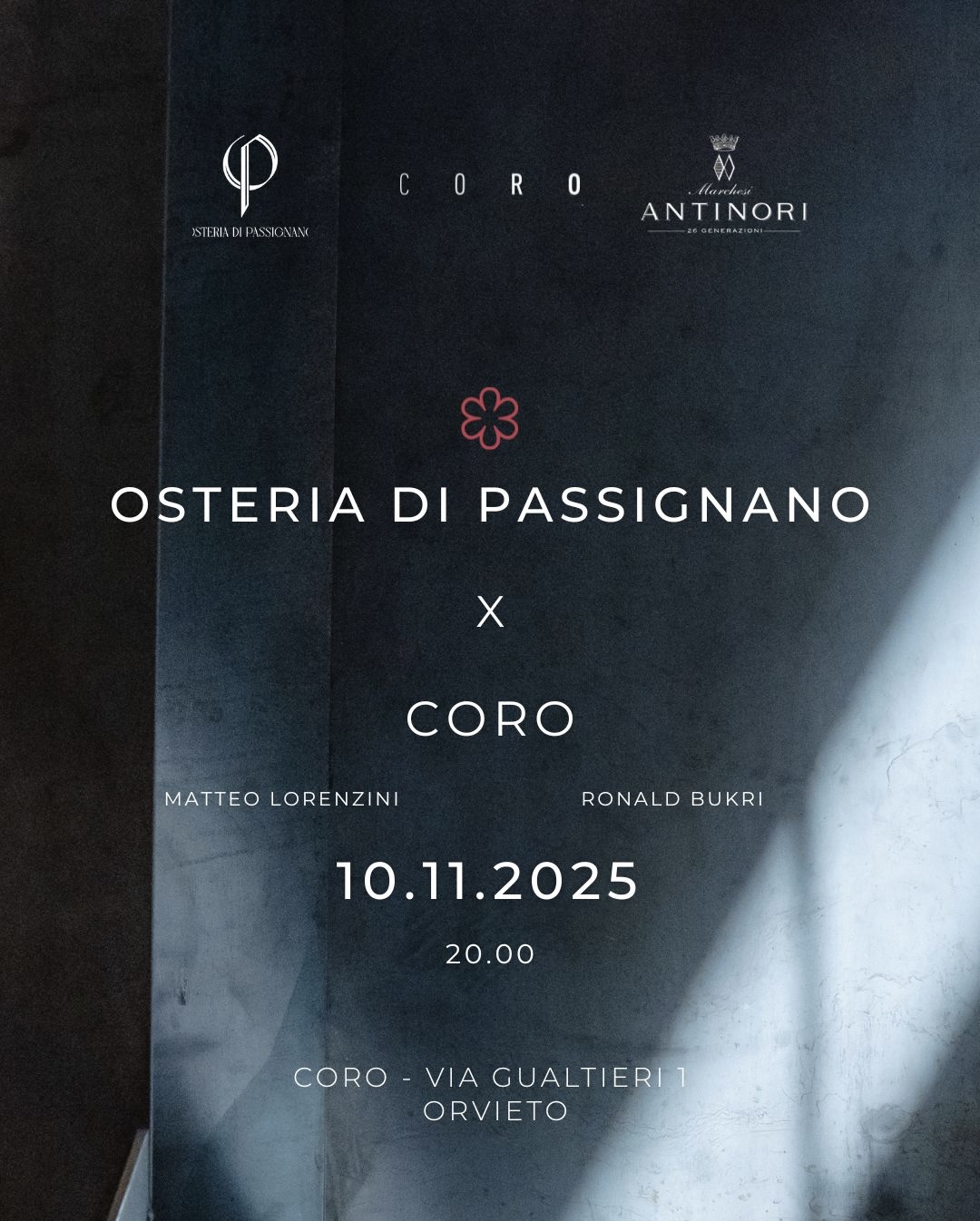 C’è qualcosa di speciale che accade quando due cucine scelgono di lavorare insieme. Non si tratta solo di condividere ricette o tecniche, ma di mettere in dialogo visioni e sensibilità. Con questo spirito, Coro presenta la Cena a Quattro Mani che si terrà il 10 novembre, in collaborazione con lo Chef Matteo Lorenzini e la brigata dell’Osteria di Passignano. La serata nasce con l’intenzione di costruire un percorso condiviso, piatto dopo piatto, in cui due approcci culinari complementari si incontrano: da una parte, la verticalità, la nitidezza e la tensione gustativa che caratterizzano la cucina di Coro; dall’altra, la rotondità aromatica, la profondità vegetale e la continuità territoriale dell’Osteria di Passignano.