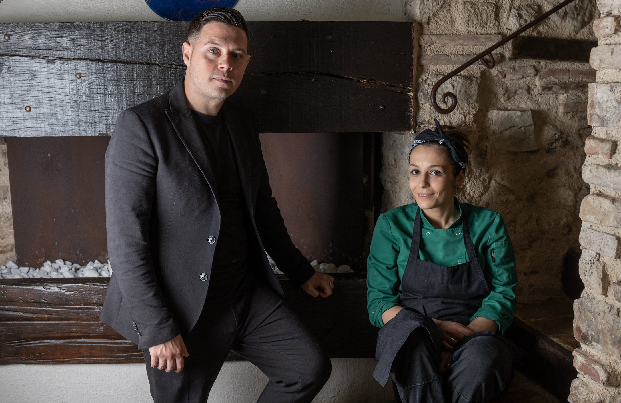 C’è un piccolo borgo arroccato sulle colline sabine e che affaccia verso Rieti. Dista appena una decina di minuti in auto, il centro reatino, ma qui sembra di essere in un’altra epoca, un altro mondo. Un mondo fatto di luci soffuse, di atmosfera pacata, di vita lenta. Un mondo fatto di casette di mattoni e di gatti che gironzolano per le piccole vie, popolate più di mansueti mici che di effettivi abitanti. Il “qui” risponde al nome di Contigliano, più precisamente ci troviamo a Contigliano alta, la parte vecchia di un piccolo centro che si sviluppa più in basso secondo “canoni” urbanistici più moderni e sicuramente più comodi. E proprio a Contigliano alta, appena superato un grosso arco che di fatto fa da porta d’ingresso al borgo, al termine di una salitina fa capolino una perla in cui non ci si imbatte certo per caso. Una perla che, in quanto tale, va cercata e trovata, una realtà coraggiosa diventata concreta grazie a due giovani che in questo centro, anche con un po’ di incoscienza e coraggio, hanno creduto e continuano a farlo. Loro sono Carlotta Delicato (31 anni, originaria di Cassino) e Gabriele Tarquini (36, di Contigliano), rispettivamente chef e responsabile di sala (oltre che compagni nella vita) del Ristorante Delicato.