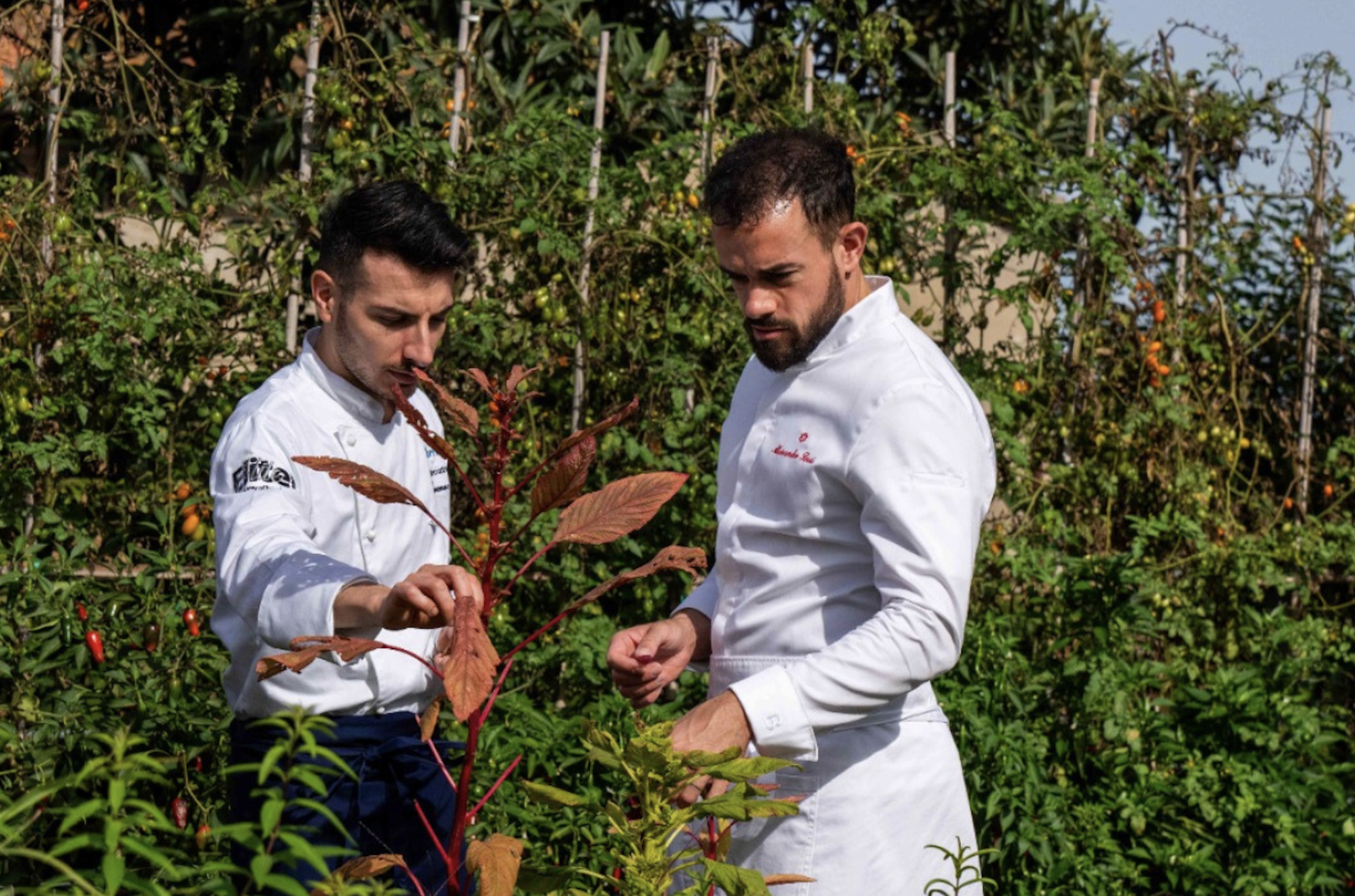 Gli ingredienti vengono raccolti poche ore prima di essere impiattati, garantendo un’esplosione di sapore e proprietà nutritive, che ovviamente i prodotti della grande distribuzione non possono eguagliare. Il Barbagianni dimostra che è possibile fare alta cucina rispettando e valorizzando i prodotti della terra, anche in un contesto storico e urbano. La presenza dell’orto domestico detta la costruzione del menù, difatti a carta del ristorante cambia seguendo la disponibilità stagionale. Gli chef adattano le loro creazioni a ciò che l’orto offre in quel periodo e questo approccio si traduce in piatti che sono un vero e proprio racconto del territorio. Laddove l’orto non riesce a soddisfare il fabbisogno del ristorante, vengono utilizzati ingredienti dei vicini produttori locali. Il legame con i fornitori del territorio è, infatti, l’altro pilastro della filosofia del Barbagianni, garantendo una rete di collaborazioni a km zero che sostiene l’economia locale. Oltre ai classici cetrioli, melanzane e cavoli, l’orto del Barbagianni propone ben quattro varietà di Basilico e altre erbe aromatiche davvero particolari come l’Achillea, i fiori di Tagete, l’Erba Pepe, il Levistico, le foglioline tenere della Pimpinella, l’Amaranta Verde e i fiori violacei della Cosmea. Qui si respirano i sentori agrumati della Verbena, le note balsamiche del Lemongrass, il tocco piccante del Nastursio e l’acidità dell’Acetosa.