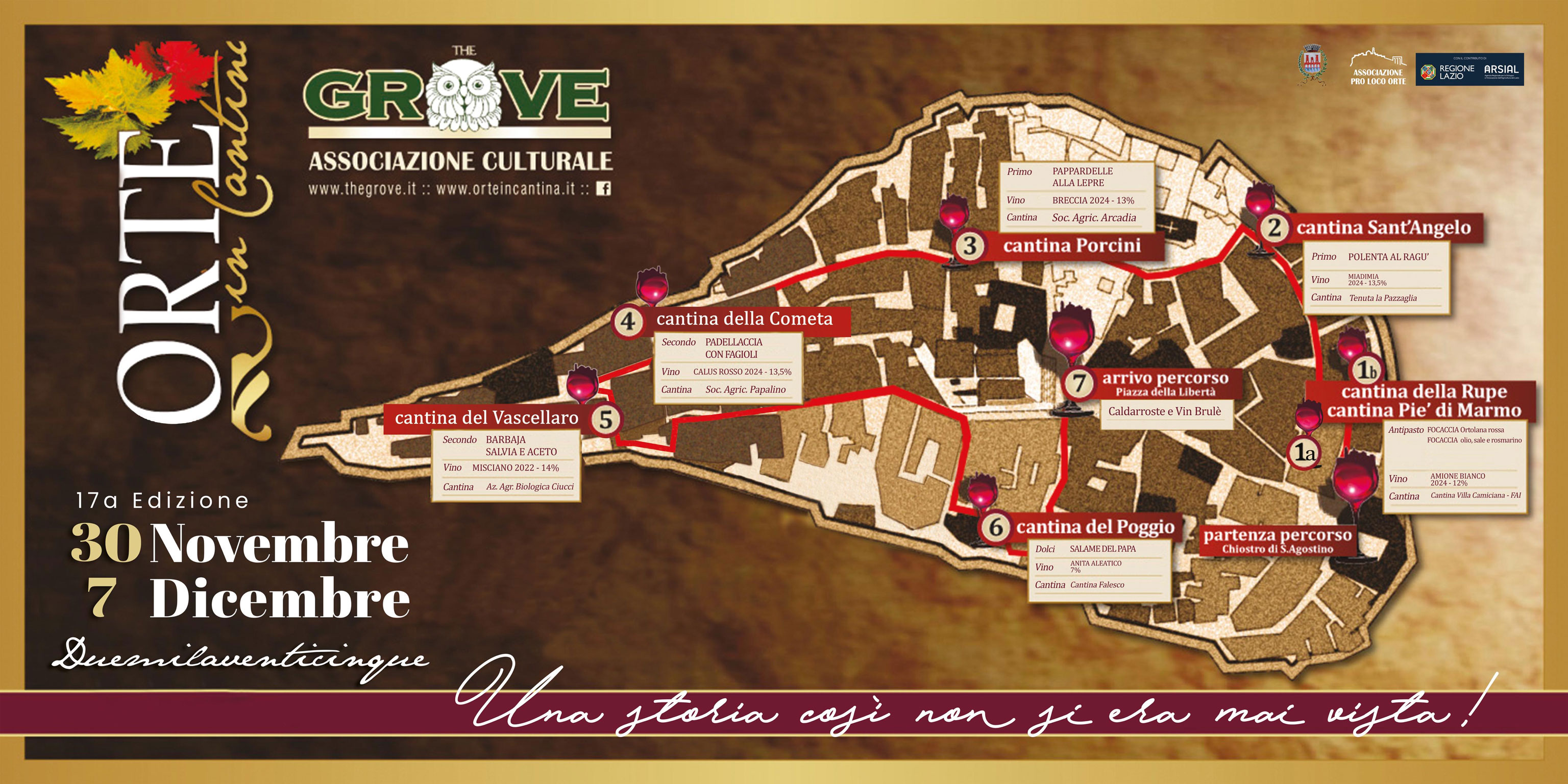 L’evento rappresenta da anni un momento di incontro e convivialità: famiglie, turisti, locali e appassionati di cibo e vino ritrovano nelle strade di Orte un’atmosfera calda e accogliente, resa ancora più suggestiva dall’illuminazione invernale e dai profumi delle taverne. L’edizione 2025 promette quindi di mantenere lo spirito autentico che negli anni ha reso Orte in Cantina un evento simbolo del territorio, offrendo un’esperienza che unisce gusto, storia e scoperta. Un appuntamento da segnare in agenda per chi ama esplorare i sapori e le piccole realtà locali. L’appassionante viaggio è arricchito, mattina e pomeriggio, da percorsi turistici per visionare il complesso sotterraneo della città, le Chiese, i Musei e i Palazzi di particolare pregio.